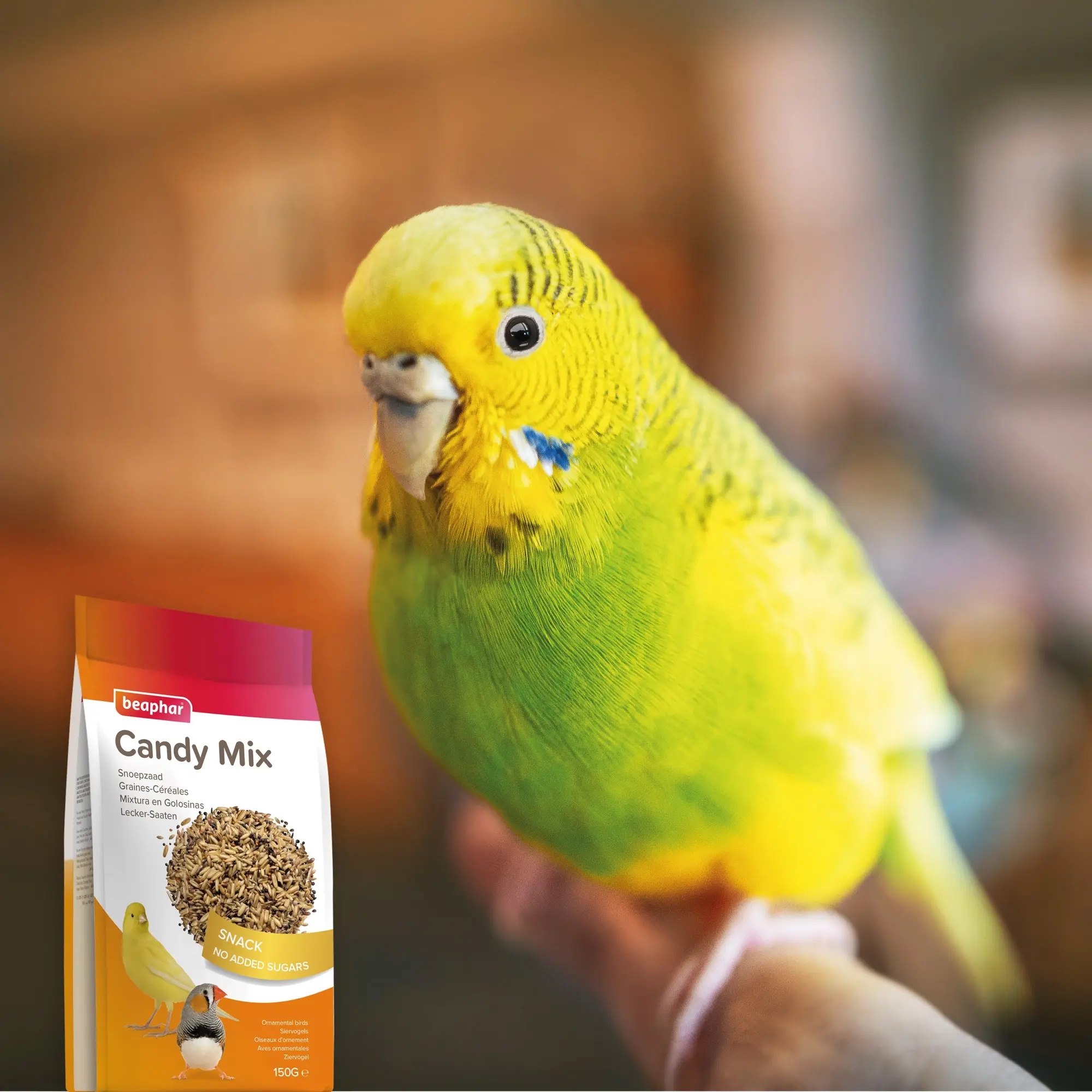 Czy chcesz od czasu do czasu podać swojemu pupilowi odpowiednią przekąskę? Beaphar ma w swojej ofercie Snoepzaad, Zangmix oraz Vruchtzaad. Ponadto ptaki czasami lubią również świeży kawałek owocu, ale zwróć uwagę, jaki owoc podajesz; na przykład awokado jest toksyczne dla papug falistych. Upewnij się, że ptaki nie mają ciągle dostępnego owocu; wtedy istnieje szansa, że zostawią swoje normalne posiłki z powodu smakowitej przekąski; może to prowadzić do niedoborów w organiźmie. Ponadto ważne jest oczywiście usunięcie owocu w odpowiednim czasie: zanim zacznie pleśnieć i może stać się źródłem chorób.