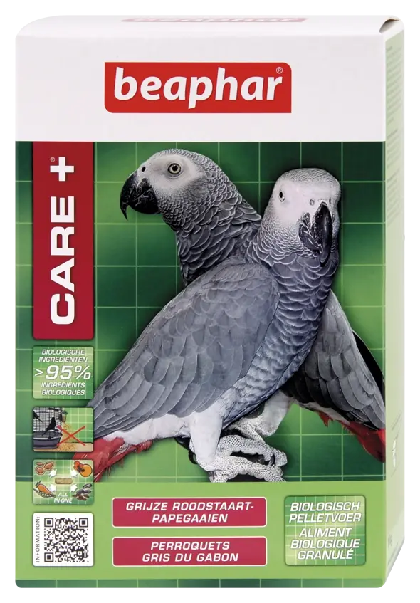 Karma Care+ dla ptaków to kompletna karma super premium oparta na bazie biologicznej. Wyjątkową cechą tego pokarmu jest to, że witaminy i minerały występują w swojej naturalnej postaci. Dokonuje się tego poprzez wykorzystanie warzyw, owoców i ziół, które naturalnie zawierają wiele tych niezbędnych składników odżywczych. Granulki nie są poddawane obróbce termicznej, dzięki czemu w produkcie zachowuje się prawie wszystkie składniki odżywcze. 95% użytych składników jest certyfikowanych jako organiczne. W uprawie organicznej, gdzie nie stosuje się pestycydów, rośliny muszą być jak najzdrowsze. Taka uprawa daje wyższą wartość odżywczą i dostarcza naturalnych składników budulcowych dla organizmu ptaka. Wiele organicznych warzyw jest więc przetwarzanych w karmie Care+. Aby zachować wartość odżywczą, granulki są pakowane w atmosferze ochronnej. Care+ nie zawiera konserwantów. Care+ zawiera wiele różnych naturalnych i nieprzetworzonych surowców, z których każdy ma szereg specyficznych właściwości. Poprzez połączenie ich tworzy się odpowiednią dietę. Przykłady używanych składników to: