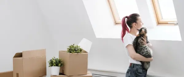 - Zminimalizuj zakłócenia dla swojego kota lub psa, wyprowadzając go jako ostatniego i wprowadzając go jako pierwszego – pamiętaj tylko, aby poinformować firmę przeprowadzkową, w którym pomieszczeniu się znajdują, i nie wchodzić do niego. Użyj Beaphar CatComfort lub CaniComfort Spray, aby pomóc swojemu zwierzakowi poczuć się bardziej zrelaksowanym w nowym domu.